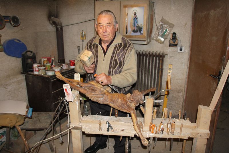 86 letni Jože Korošec uživa ob kiparskem delu
