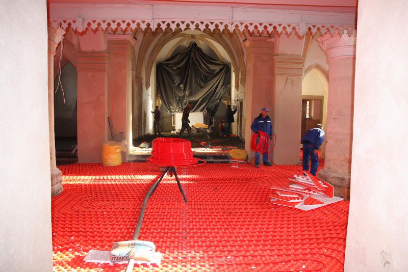 Kot smo pred časom že poročali, v notranjosti cerkve sv. Benedikta v Benediktu potekajo obsežna obnovitvena dela. Tokrat smo si s fotografskim objektivom, ogledali notranjost cerkve. Bili smo priča polaganja cevi za talno gretje, kar nazorno prikazuje naša fotografija. Tega pogleda mnogi ne bi bili deležni, če ne bi videli pričujoče slike, kajti takoj za položitvijo ogrevalnih cevi so jih gradbeniki zalili z estrihom, ki so ga ob našem obisku polagali (urejali) v oltarnem deli cerkve.