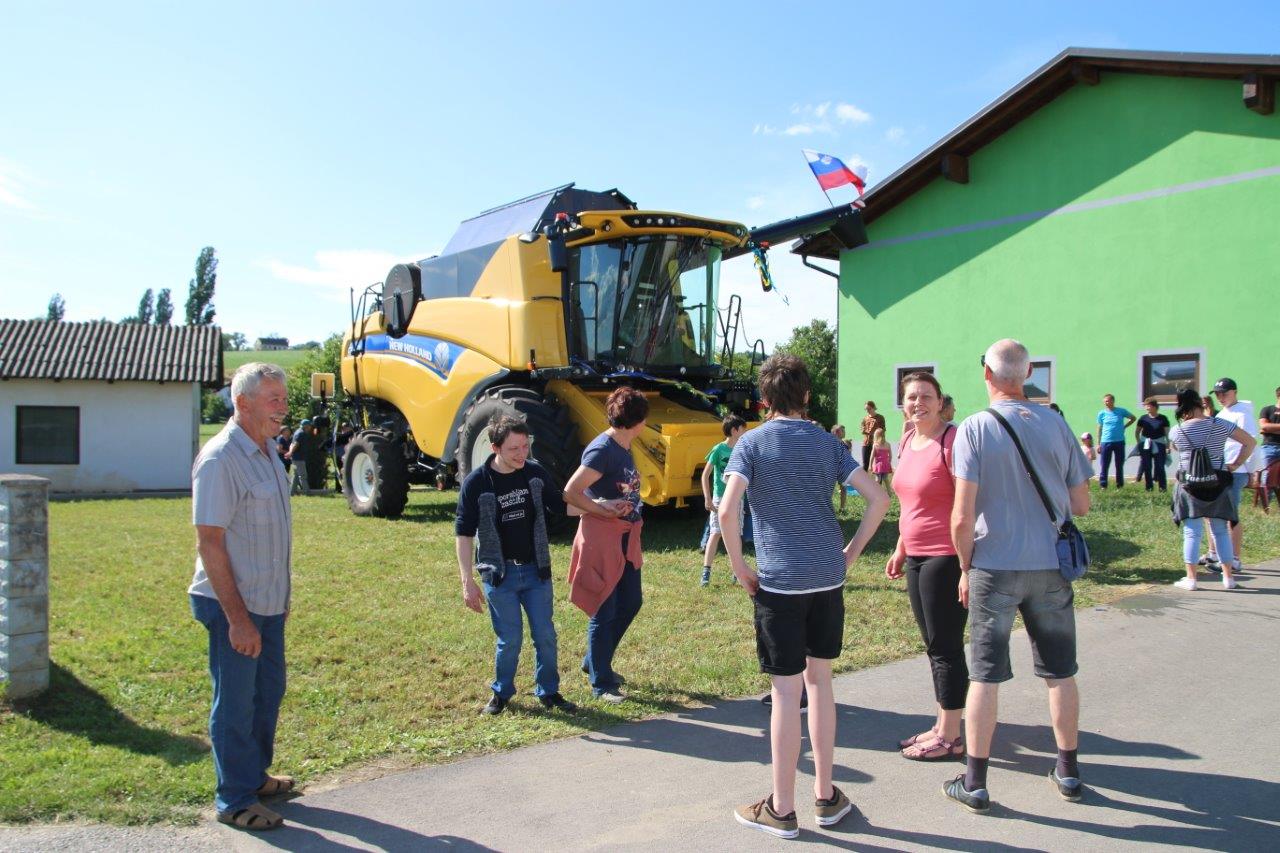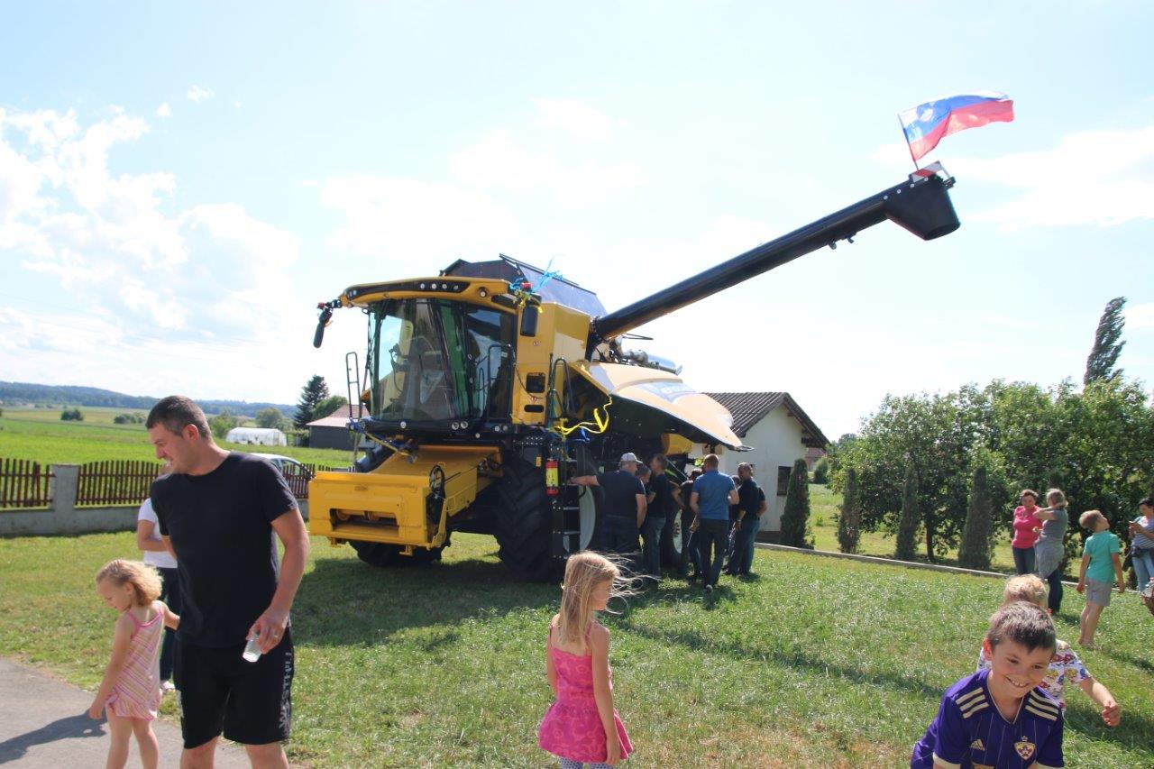 Novi kombajn družine Kukovec s pripadajočimi priključki lahko žanje številne poljščine, predvsem žita, kot so: pšenica, rž, ječmen, oves, ajda, proso,… ter seveda tudi koruzo. O novi pridobitvi vzorno urejene kmetije nam je gospodar Peter Kukovec povedal: »Po poklicu sem avtomehanik in sem pred prevzemom posesti bil redno zaposlen. Pred desetimi leti me je dotedanji gospodar kmetije, danes 92 - letni Franc Korošak, ki je moj stric, ni imel otrok, povabil da prevzamem kmetijo. Pustil sem službo in se s svojo partnerico posvetil kmetovanju. Smo mešana kmetija, saj redimo živino in pridelujemo poljščine za prodajo. Obdelujemo 30 ha zemlje, od tega 25 lastne. S kombajnom upravljam že 20 let. Moja želja je bila, da nabavim novejšega in zmogljivejšega. To nama je sedaj uspelo. Kombajn bo služil za delo na naši kmetiji, ob tem pa bom opravljal, prek Strojnega krožka Gornja Radgona, usluge tudi drugim kmetovalcem. Ker je to velik finančni zalogaj, sva želela s sopotnico Janjo to pridobitev proslaviti s sosedi, sorodniki in prijatelji. Vesela sva, da se je najinemu vabilu odzvalo tako lepo število obiskovalcev.«
