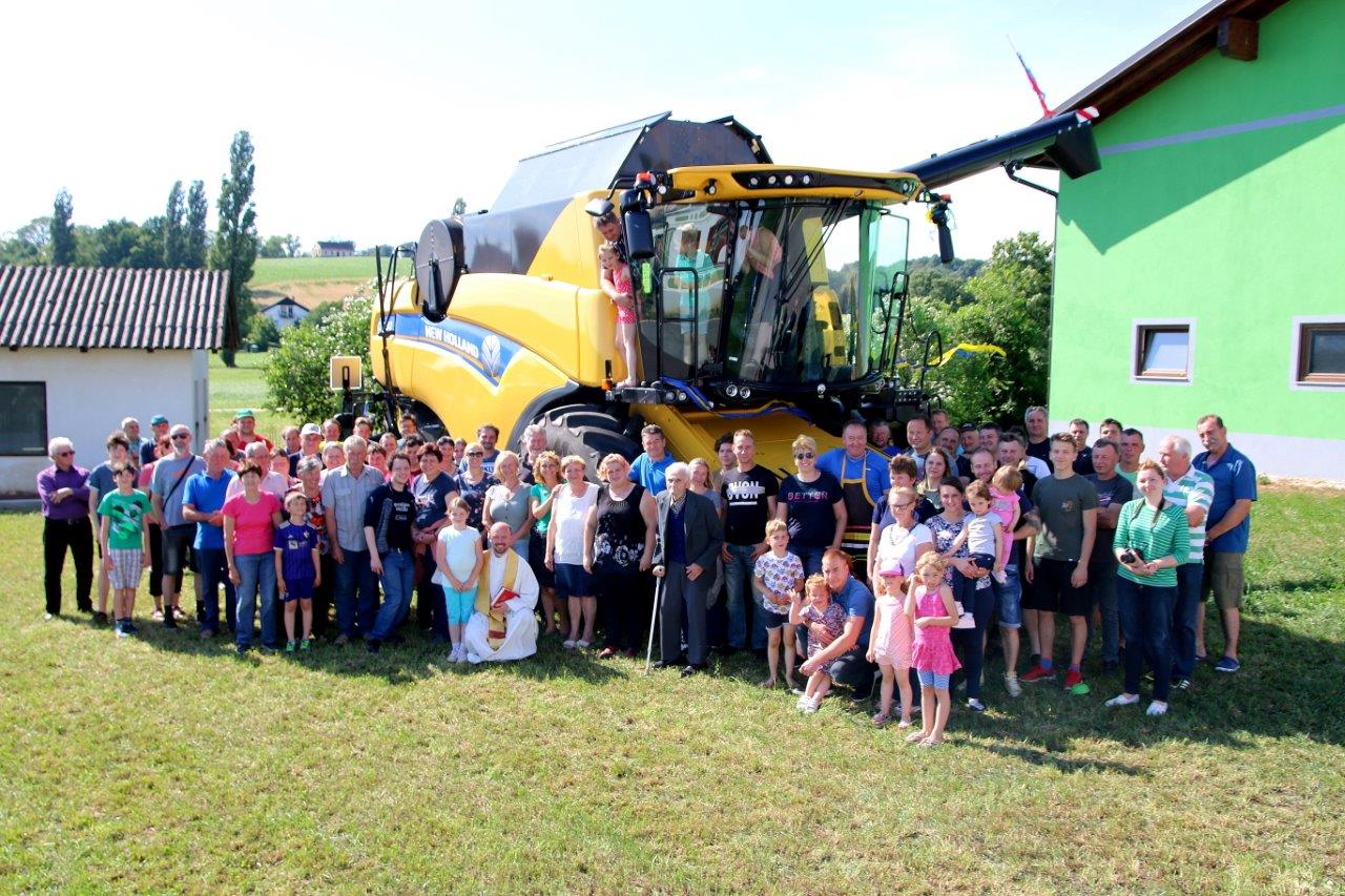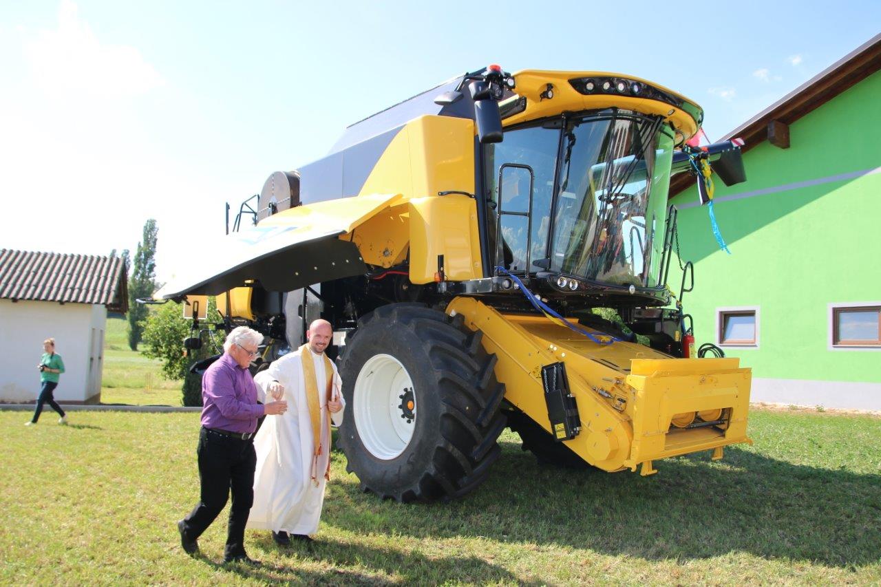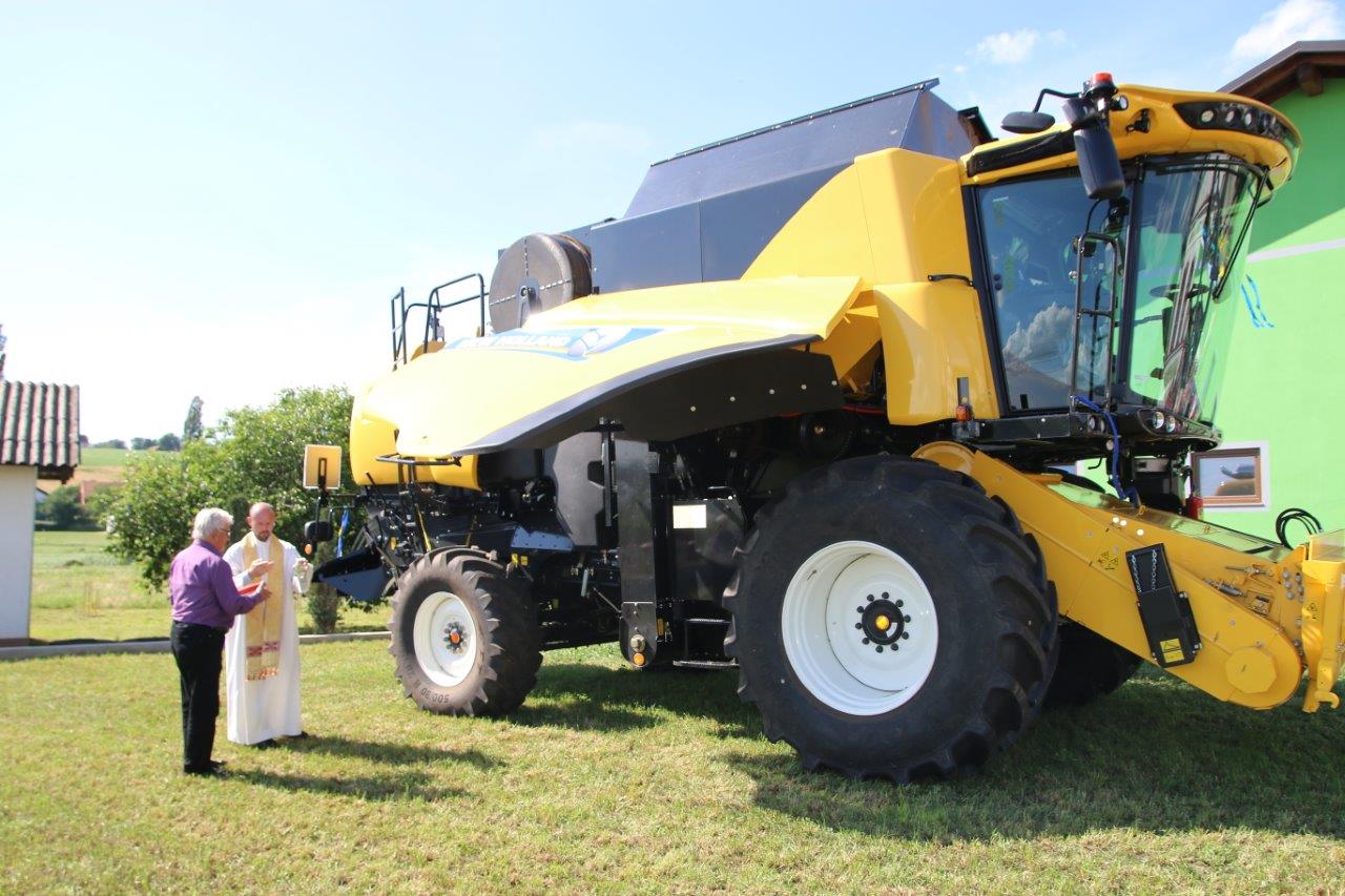 Poslej pa bo obdelovanje njune kmetije še lažje in enostavneje, kajti od prve polovice letošnjega junija so bogatejši za posebni „stroj“, ki jima bo bistveno olajšal obdelovanje kmetije, to pa bodo občutili tudi mnogi drugi, ki jim Peter, preko strojnega krožka, dela na kmetiji. Zaradi tega niti ne preseneča, da se je kmetiji Kukovec, kjer je potekal veseli dogodek, zbralo veliko sorodnikov, sosedov, prijateljev in znancev, ki so sledili blagoslovu njihove velike pridobitve. Župnik župnije Sv. Jurij ob Ščavnici Boštjan Ošlaj je namreč opravil blagoslov novega kombajna New Holland CX7.80, z izjemnimi zmogljivostmi. Ob blagoslovu je župnik lastnikom zaželel uspešno delo s tako zahtevnim strojem, ter da bi jim božji blagoslov stal ob strani. Ob pokropitvi kombajna se je župnik povzpel na vrh kombajna in od tam z višine pokropil prisotne obiskovalce. Naj kot zanimivost omenimo, da je na vrhu dvignjenega voda za transport zrnja plapolala slovenska zastava.