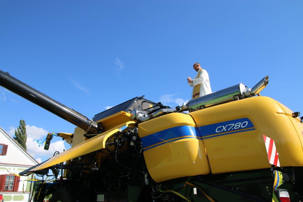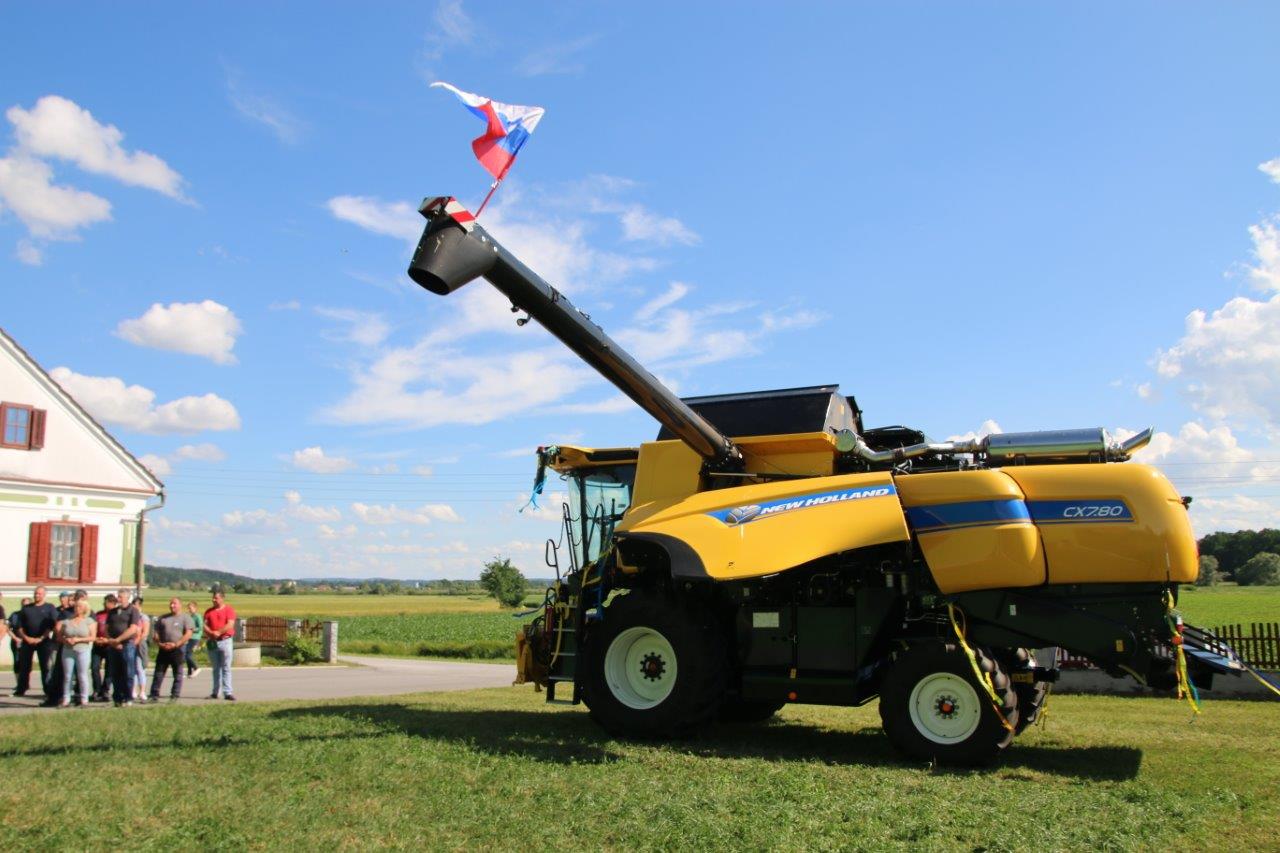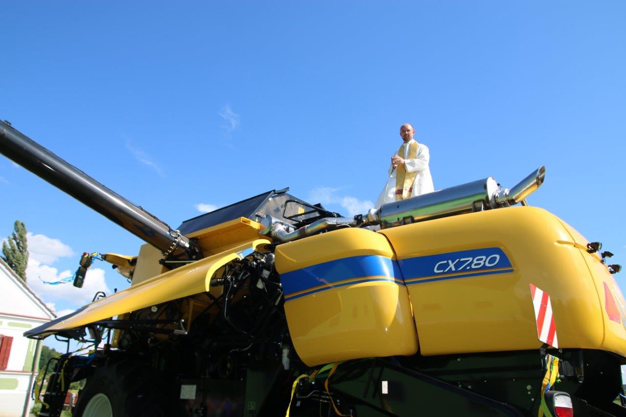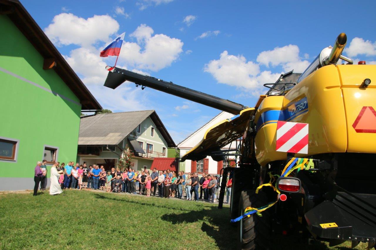Poslej pa bo obdelovanje njune kmetije še lažje in enostavneje, kajti od prve polovice letošnjega junija so bogatejši za posebni „stroj“, ki jima bo bistveno olajšal obdelovanje kmetije, to pa bodo občutili tudi mnogi drugi, ki jim Peter, preko strojnega krožka, dela na kmetiji. Zaradi tega niti ne preseneča, da se je kmetiji Kukovec, kjer je potekal veseli dogodek, zbralo veliko sorodnikov, sosedov, prijateljev in znancev, ki so sledili blagoslovu njihove velike pridobitve. Župnik župnije Sv. Jurij ob Ščavnici Boštjan Ošlaj je namreč opravil blagoslov novega kombajna New Holland CX7.80, z izjemnimi zmogljivostmi. Ob blagoslovu je župnik lastnikom zaželel uspešno delo s tako zahtevnim strojem, ter da bi jim božji blagoslov stal ob strani. Ob pokropitvi kombajna se je župnik povzpel na vrh kombajna in od tam z višine pokropil prisotne obiskovalce. Naj kot zanimivost omenimo, da je na vrhu dvignjenega voda za transport zrnja plapolala slovenska zastava.