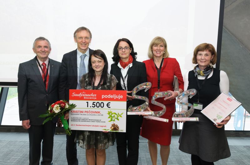 Izbor najboljših del, povezanih z okoljem in ustreznim ravnanjem z odpadki, je tudi letos potekal v sodelovanju s slovenskimi fakultetami, in sicer Fakulteto za strojništvo Univerza v Mariboru, Fakulteto za kemijo in kemijsko tehnologijo Univerza v Ljubljani, Fakulteto za gradbeništvo in geodezijo Univerze v Ljubljani in Fakulteta za znanosti o okolju Univerza v Novi Gorici. Izmed sedmih del, ki so prišla v ožji izbor, je strokovna komisija v sestavi mag. Emil Škrinjar, univ. dipl. ing. kem. tehn., kot predsednik, ter člani: asist. dr. Filip Kokalj (FS UNI MB), doc. dr. Andreja Žgajnar Gotvajn (FKKT UNI LJ), asist. dr. Mario Krzyk (FGG UNI LJ), in prof. dr. Anton Brancelj (FZO UNI NG), soglasno izbrala za zmagovalno nalogo delo diplomantke Fakultete za strojništvo Univerze v Mariboru Kristine Pečovnik z naslovom: Učinkovitost kemijsko modificiranih NF membran pri zadrževanju ionov težkih kovin. Slednja je od podjetja Saubermacher prejela denarno nagrado v vrednosti 1.500 EUR, namenjenih nadaljnjemu pridobivanju znanja in razvijanju novih, inovativnih idej.