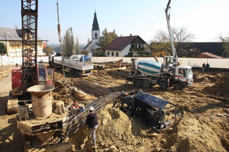 Tako bi lahko dejali ob pogledu na gradbišče sredi Sv. Jurija ob Ščavnici, kjer gradijo Kulturni center, v katerem bo našla svoj prostor kultura in druge družbene dejavnosti. Na sorazmerno male prostoru, stoji veliko gradbene mehanizacije, s katero izvajajo potrebna zemeljska dela. Ker smo o načrtih izgradnje že pisali, bomo tokrat potek gradnje pokazali le na sliki. Gradbena dela, ki bi naj bila končana v enem letu, izvaja Gradbeno podjetje Pomgrad Murska Sobota.
