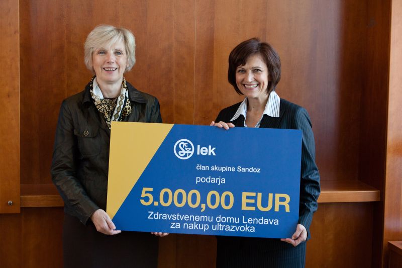 Družba Lek, član skupine Sandoz, je v okviru svojega družbeno odgovornega delovanja Zdravstvenemu domu Lendava predal donacijo v višini 5.000 evrov kot prispevek za nakup novega splošnega ultrazvoka. Z njegovo pomočjo bodo v ZD Lendava učinkoviteje in hitreje poskrbeli za bolnike, s čimer bo zdravstvena oskrba na tem območju postala še bolj kakovostna. Lek pa z omenjeno donacijo nadaljuje svoje dolgoletno družbeno odgovorno udejstvovanje v Lendavi in njeni okolici ter dokazuje, da bo tako tudi v prihodnje. Leto 2012 bo za Lekovo lokacijo v Lendavi namreč še posebej pomembno, saj bodo obeležili 30-letnico delovanja v Lendavi ter 20-letnico, odkar so v Lendavi začeli proizvajati kalijev klavulanat.
