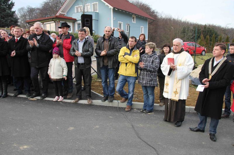 Župan je v svojem nagovoru poudaril, prizadevanje občine, občinskih svetnikov, posebej pa Danijela Tušeka in strokovnega sodelavce občine Jožeta Žela, da je ta projekt dokončan. Pohvalil je ob ulici živeče krajane, ki so morali kar celi dve leti trpeti ob vožnji po neutrjenem cestišču, ter požirati dvigajoči se prah, kateri se je dvigal ob vožnji avtomobilov. Zahvalil se je tudi vsem, ki so pripomogli, da so lahko cesto razširili in so zato prispevali kak košček zemljišča. Nazadnje se je zahvali tudi podjetju Komunala Slovenske gorice, d.o.o., ki je kvalitetno dokončala začeta dela propadlega podjetja. Po kulturnem vložku, ki ga je zaigral je harmonikar Roman Kranvogl, je župnik pater Bernard Goličnik opravil blagoslov tega pomembnega objekta. Ob tem je dejal: »Blagoslovljena cesta naj bo znamenje, da nas Bog spremlja na cesti, ko se vozimo po njej.«