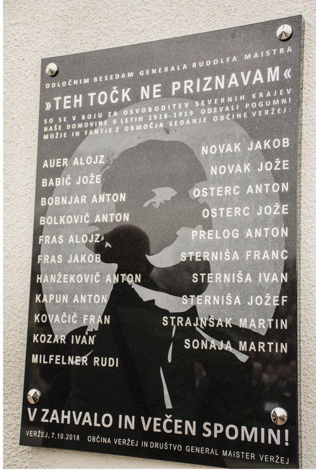 Mimogrede kaže omeniti, da je Društvo generala Maistra Veržej, ki je bilo ustanovljeno 18. marca 2018, v sodelovanju občine Veržej in ZDGM, ki sta zadevo finančno podprla, v okviru 100-letnice bojev za severno mejo, namestili spominsko ploščo preminulim 21 Maistrovim borcem iz sedanje občine Veržej. To so bili, iz Veržeja: Alojz AuerJože BabičAnton BobnjarAlojz FrasJakob FrasAnton HanžekovičAnton KapunFran KovačičIvan KozarRudi MilfelnerAnton OstercAnton PrelogFranc SternišaIvan SternišaJožef SternišaMartin StranjšakMartina Šonaja; iz Bunčanov: Anton Bolklovič in Jože Osterc ter iz Banovcev: Jakob Novak in Jože Novak. Plošča z imeni in priimki je nameščena na pročelju Doma kulture v Veržeju...
