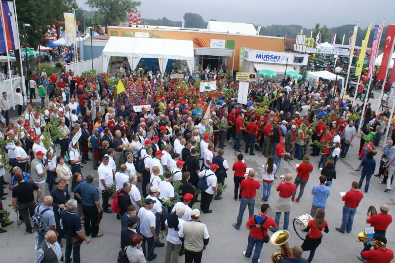 V okviru dogajanja na 51. mednarodnem kmetijsko-živilskem sejmu Agra na Pomurskem sejmišču v Gornji Radgoni, se je včeraj (torek), med drugimi zbralo tudi več kot 1000 slovenskih vinogradnikov iz vseh treh vinorodnih dežel. Med njimi so prevladovali dolenjski vinogradniki, ki so bili organizatorji posveta in so prispeli s kar 19 avtobusi, njihova posebnost pa je rdeča barva cvička, saj so skorajda vsi imeli rdeče majice. V Gornji Radgoni so namreč protestirali proti predlogu o višini katastrskega dohodka za vinogradnike, ki je za njih nesprejemljiv. »Vlado damo, vina ne damo. Vlado damo, cvička ne damo,« so vzklikali ogorčeni vinogradniki, katere je spremljala tudi glasba.
