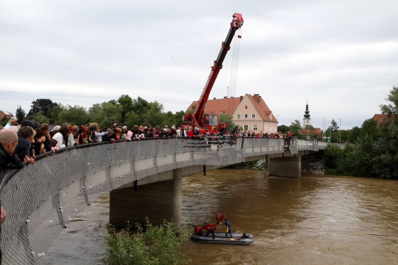 Izpod valov reke Mure bodo potegnili 100 steklenic penine, ki tam zori od lanskega junija...