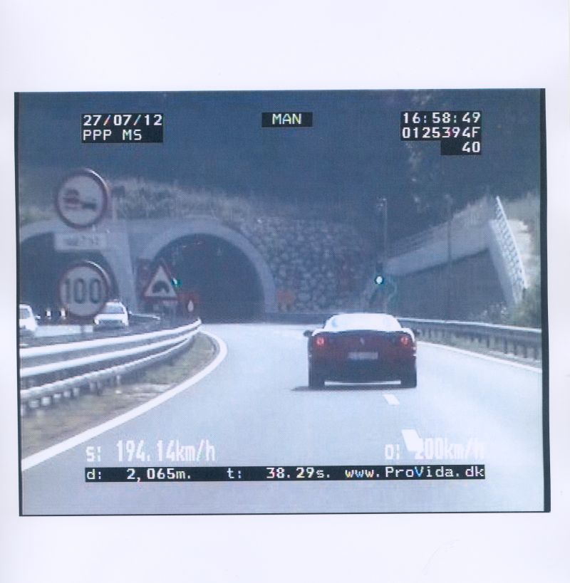 Sveti Jurij ob Ščavnici – Patrulja Prometne policijske postaje Murska Sobota je minuli petek, 27. julija 2012 z video sistemom za merjenje hitrosti (znana: Provida) izsledili italijanskega voznika, ki je z osebnim avtomobilom znamme Ferrari vozil po Pomurski avtocesti 200 km/h. V primerjavi z ljubljanskim županom čigavo hitrost so na Notranjskem menda merili amaterji, pa se nesrečni Italijan ni mogel izogniti sankcijam.