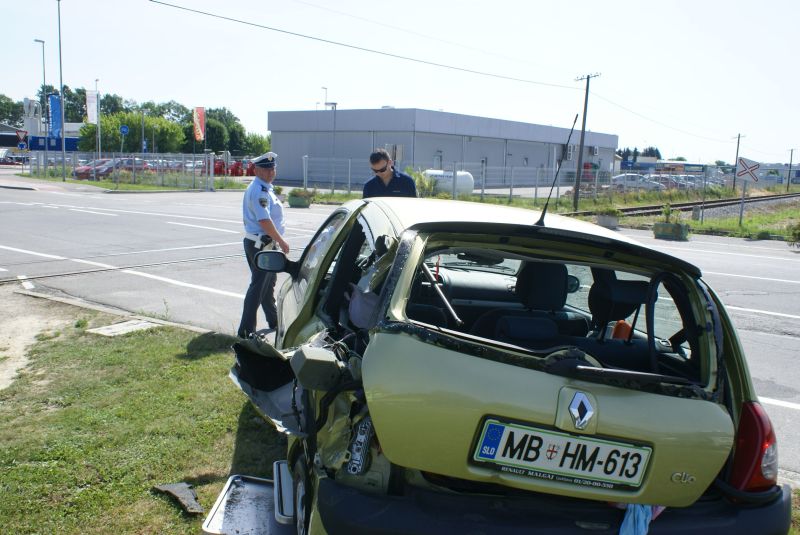 Gornja Radgona, 10. junija – Danes ob 8,59 uri se je na prehodu čez železniško progo pri Arcontu v Gornji Radgoni pripetila prometna nesreča, ki pa se je kljub hujši poškodbi voznika osebnega avtomobila in njegovemu uničenemu Cliu, končala več kot srečno. Po ugotovitvah policistov je 30 – letni voznik osebnega avtomobila, B.J. iz bližnjih Lastomercev, med vožnjo iz krožnega križišča regionalne ceste Gornja Radgona – Radenci, proti Črešnjevcev, pri tovarni Arcont, očitno spregledal tovorni vlak, ki je pripeljal iz ljutomerske speri proti železniški postaji v Gornji Radgoni. V nezavarovanem prehodu čez železniške tire, kjer naj bi strojevodja z zvočnimi signali voznika opozarjal, je tovorni vlak trčil v zadnji del avtomobila in ga odvrgel nekaj metrov od tračnic. Tam je avtomobila obstal v njem pa poškodovani voznik, ki bi popoldan moral v službo v Palomo v Sladkem Vrhu. Z reševalnim vozilom so ga nemudoma odpeljali v murskosoboško bolnišnico.