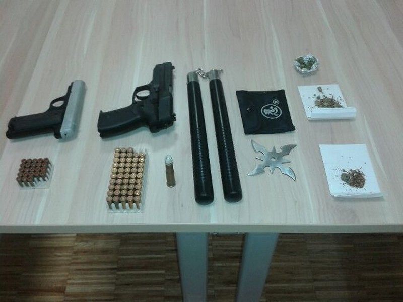 Gornja Radgona - Policisti PP Gornja Radgona so minuli teden, v petek, 19.7.2013 na podlagi pridobljene odredbe sodišča opravili v sodelovanju z Enoto vodnikov Službenih psov PU Murska Sobota in policistov PP Maribor hišno preiskavo na območju PU Maribor zaradi suma storitve kaznivega dejanja neupravičene proizvodnje in prometa s prepovedanimi drogami. Pri hišni preiskavi so policisti 23 letniku poleg prepovedane droge konoplje zasegli še dve pištoli z okvirjem in več pripadajočimi naboji ter različno hladno orožje.
