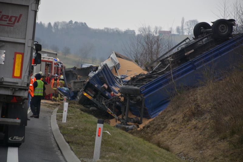 „Na avtocesti v bližini predora Cenkova, občina Sveti Jurij ob Ščavnici, sta se zaletela osebno in tovorno vozilo. Pri tem se je tovorno prevrnilo na bok. Posredovali so gasilci PGD Gornja Radgona in PGE Maribor, ki so odklopili bateriji, počistili razlite motorne tekočine ter pomagali pri odstranitvi prevrnjenih delov prikolice. V nesreči se je poškodovala tudi ena oseba. Zanjo so poskrbeli reševalci ZD Lenart in PHE Murska Sobota“, so ob tem sporočili z Regijskega centra za obveščanje.