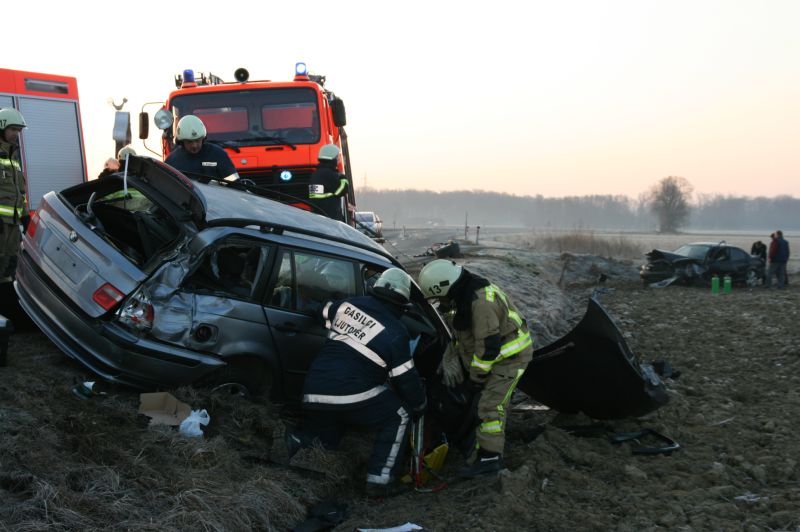 Križevci pri Ljutomeru – Včeraj (torek) štiri minute pred šesto uro zjutraj se je na regionalni cesti Gornja Radgona – Ljutomer pripetila hujša prometna nesreča. Po neuradnih podatkih je voznik osebnega avtomobila znamke BMW, med vožnjo iz smeri Ljutomera med naselji Noršinci in Križevci pri Ljutomeru prehiteval avtobus in trčil vanj, povrh pa se je čelno zaletel še v drug avtomobil, ki je pripeljal naproti. Povzročitelja nesreče, ki se je hudo telesno poškodoval, so iz pločevine izrezali ljutomerski gasilci, reševalci pa so ga odpeljali v bolnišnico. Preostali udeleženci v nesreči naj ne bi bili poškodovani, vsaj huje ne.