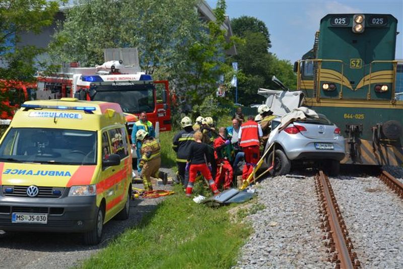 Danes (28.05.2015) okoli 12.30 ure se je na prehodu lokalne ceste čez železniške tire v industrijski coni Gornja Radgona pripetila hujša prometna nesreča. Takrat je 44-letni voznik osebnega avtomobila iz okolice Maribora, ki je peljal z glavne ceste Gornja Radgona - Radenci, v smeri Črešnjevcev, zapeljal na železniške tire ne da bi se prepričal ali lahko to varno stori. In ko je že zapeljal na tire je iz speri Gornja Radgona proti Ljutomeru pripeljal tovorni vlak, ki je trčil v desni sprednji del osebnega vozila. Slednjega je nato potiskal skoraj 100 metrov, preden se je zaustavil. Gasilci PGD Gornja Radgona so nesrečnega voznika izrezali iz zverižene pločevine, reševalci nujne medicinske pomoči Gornja Radgona (kljub stavki), na čelu z zdravnikom Stanislavom Malačičem, dr. med., pa so ga oskrbeli in nato odpeljali v Univerzitetni klinični center Maribor. Stopnja njegovih poškodb zaenkrat ni znana, po prvih podatkih pa njegovo življenje naj ne bi bilo ogroženo.