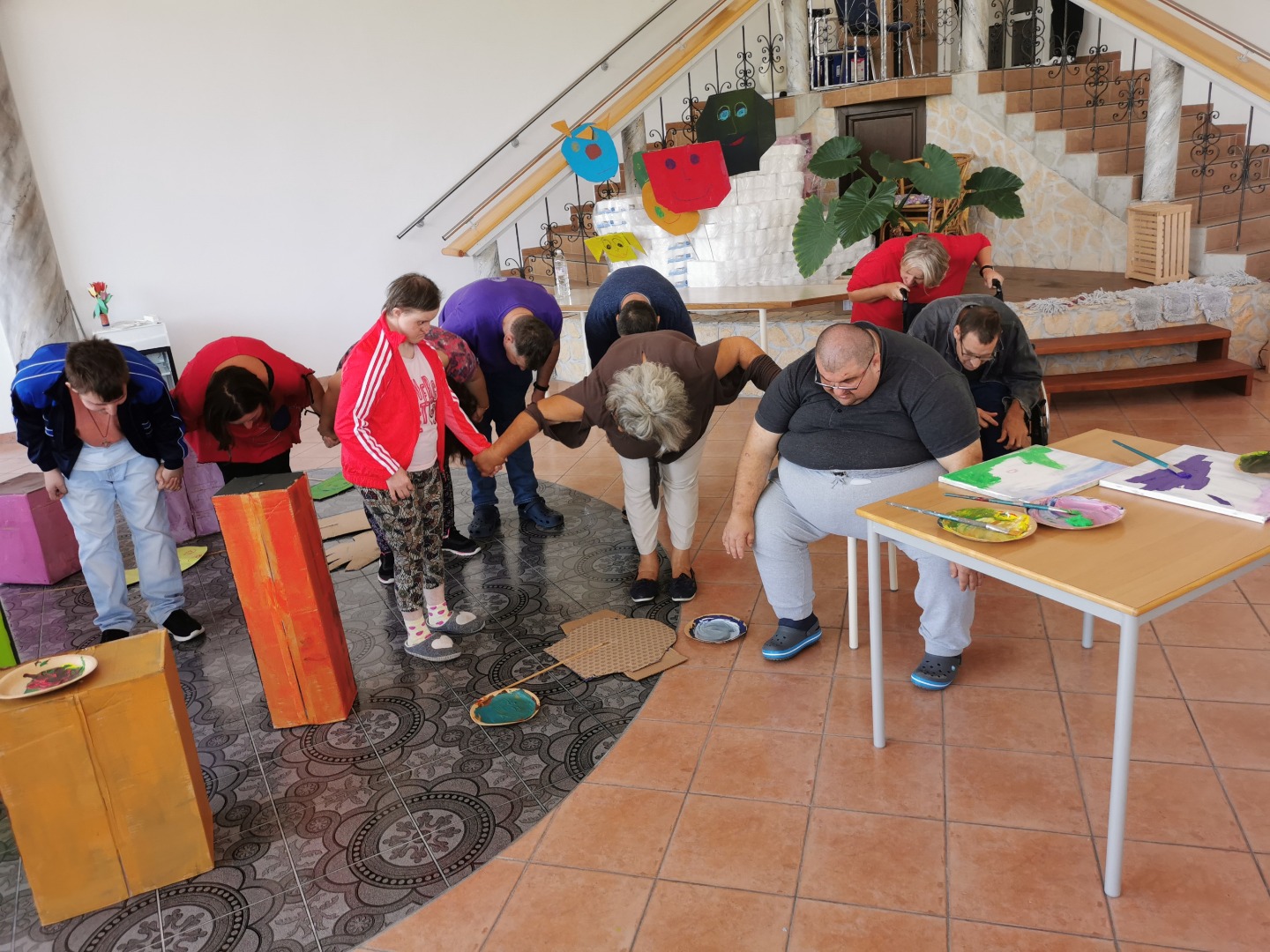 Tako je mentorica Saša Bezjak povabila h sodelovanju Mateja Kolbla, mladinca iz Trat iz bližnjih Slovenskih goric, ki je poskrbel za predvajanje glasbe na predstavi, Dano Štrucelj, bivšo vzgojiteljico vrtca Manka Golar in socialno delavko Tino Vukan. Odločili so se, da bodo naredili lutkovno predstavo. Scena je nastala kar iz velikih pobarvanih škatel. Lutke so bili ploščati naslikani in narisani obrazi na palici. Vse so udeleženci izdelali sami. Prednost Bezjakove je, da vključuje tudi tiste najbolj ranljive. Krasno glasbo, ki je bila podlaga za predstavo je naredil Tjan Šoštarič, mlad glasbenik. Predstava govori od drugačnosti, o tem kako je nekdo nesprejet, ker je drugačen. Naredili so tako rekoč javno vajo.