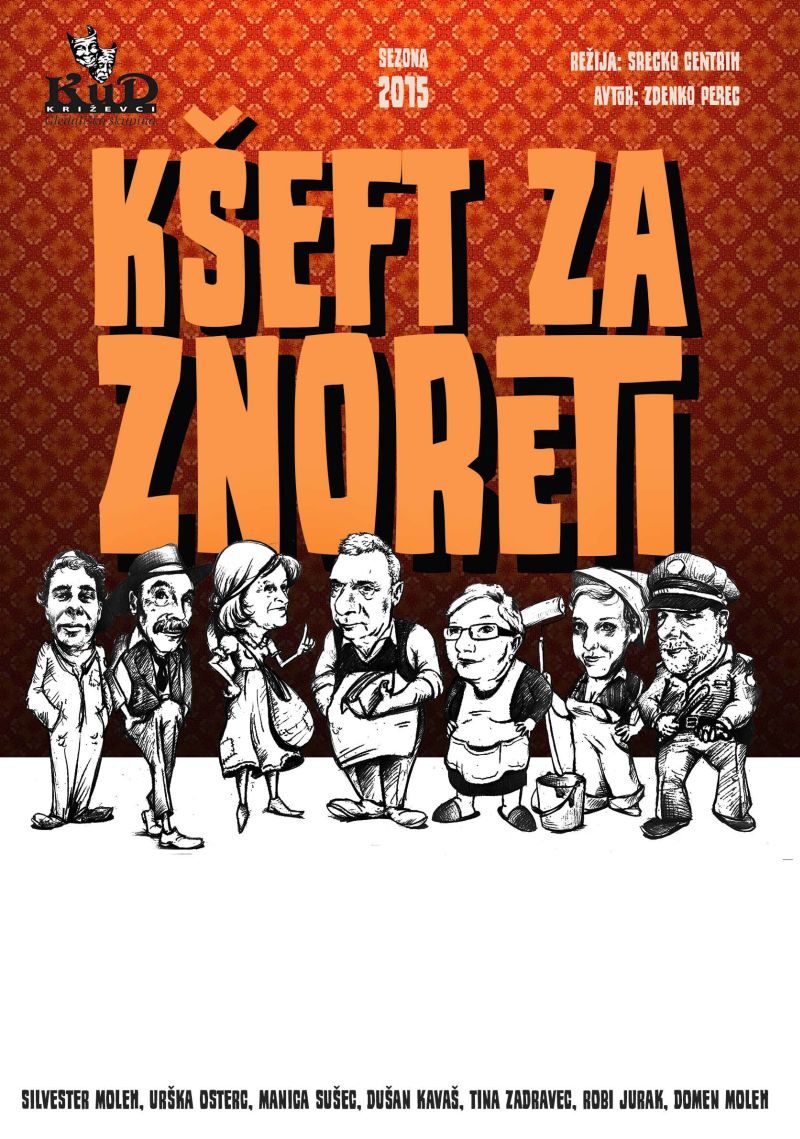 Ta konec tedna se bodo mnogi ljubitelji komedije iz Prlekije in Prekmurja gotovo zvijali od smeha. V petek, 27. februarja ob 19. uri bo namreč v Križevcih pri Ljutomeru, na sporedu premiera krstne uprizoritve komedije Zdenka Pereca: „Kšeft za znoreti“: Zanimivo komedijo je režiral znani prleški kulturnik Srečko Centrih, zaigrali pa bodo mnogi protagonisti iz Prlekije in okolice: Silvester Moleh – Franc, lastnik kmetije; Urška Osterc – Minka, njegova hči; Tina Zadravec – Bojana, njena hči; Manica Sušeč – Zofija, Ciganka; Dušan Kavaš – Cigan, njeni mož; Robi Jurak – policaj; Domen Moleh – Ištvan, zbiralec kovin; Jasmina Slana-šepetalka.