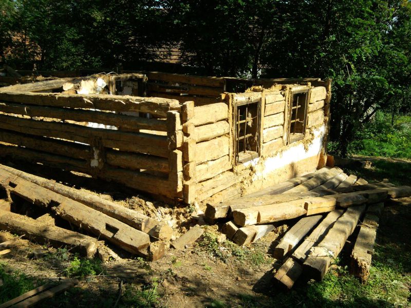 Se vam zdi, da je naslov poetičen? Ja, pa je. Kajti videti cimprano hišico, je že več kot poezija. Videti »olüpano«, se pravi brez ometa, kakršno prikazuje naša slika, pa je doživetje, ki ga ni mogoče doživeti vsak dan. Ko opazujemo, še kje ohranjene, cimprane hiše, si težko predstavljamo kako je zgrajena. Moramo priznati, tudi sami še nismo videli »olüpanih« sten take hiške, ki so narejene iz tesanih brun ali hlodov. Joj, kako preprosta gradnja, bi lahko dejali. To je bilo delo tesarjev, ki so najprej, a le samo dvostransko, stesali hlode, nato pa jih križno zvezali in tako dobili obod hiše. Za temelje hiše, ki so bili iz kamna, so poskrbeli zidarji. Na kamnite temelje so vedno položili stesane trame iz hrastovine, da jih ne bi uničila vlaga in lesni črvi. Ko je bil obod hiše z odprtinami za okna in vrata, narejen, ter postavljeno ostrešje, ki je bilo vedno krito s slamo, so nastopili »mazači«. Tako so rekli tistim, ki so z ilovico ometali, rekli »omazali« zidove. Rumeno ilovico so pomešali s na kratko narezano slamo, temu bi danes rekli »armatura ometa« in plevami, ter jo vlažno pregnetli, da je bila primerna za omet. Ker so med tramovi bile reže, so tudi te napolnili s takó pripravljeno ilovico. Reže so omogočile, da se je omet, ki bil je na debelo nanošen na stene, obdržal na stenah. Debelina ometa je predstavljala nekako toplotno izolacijo. Znano je, da so bile take hiše poleti hladne, pozimi pa so jih hitro ogreli z »gašprlom«, pečico za gretje, ali s krušno pečjo. Povemo še naj, da so bili stropi teh hiš prav tako leseni in na podstrešju izolirani z ilovico. Višina stropa je bila le okrog dva metra. To pa zato, da so se prostori hitreje ogreli. Da bi toplota ne odhajala iz prostora, so bila vgrajena tudi le majhna okenca z dvojnimi zasteklenimi krili in "polknami"!.