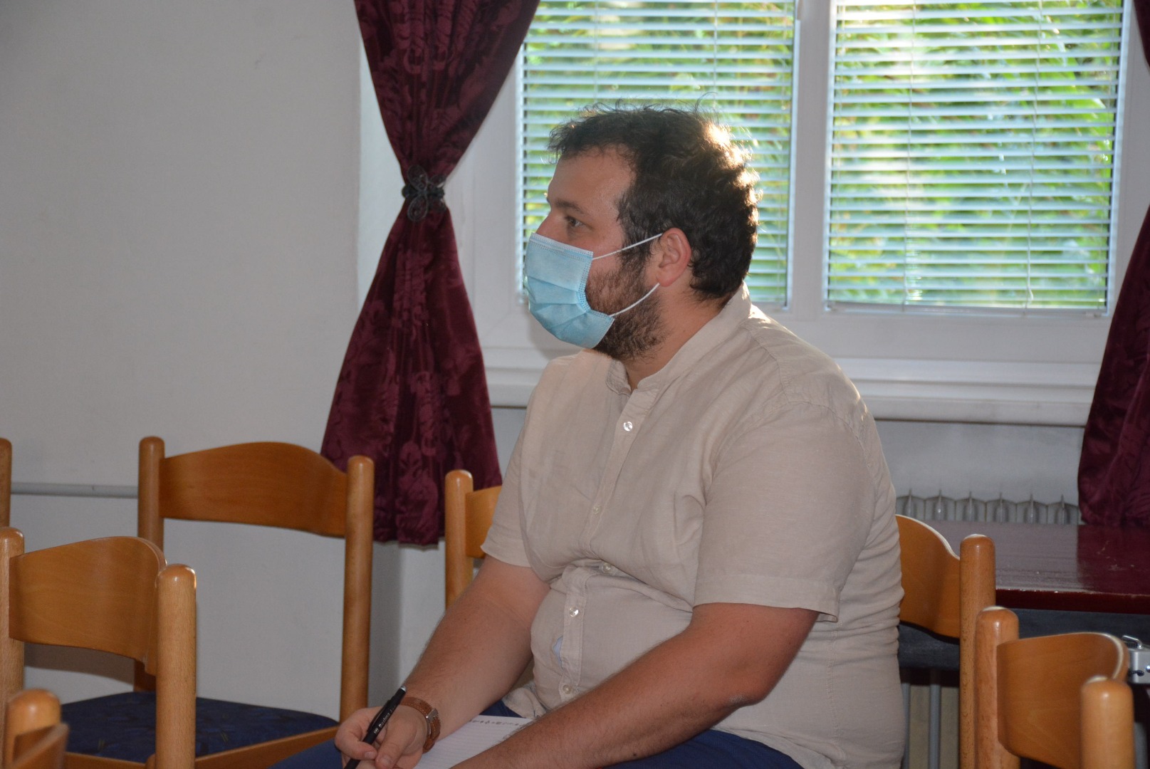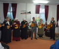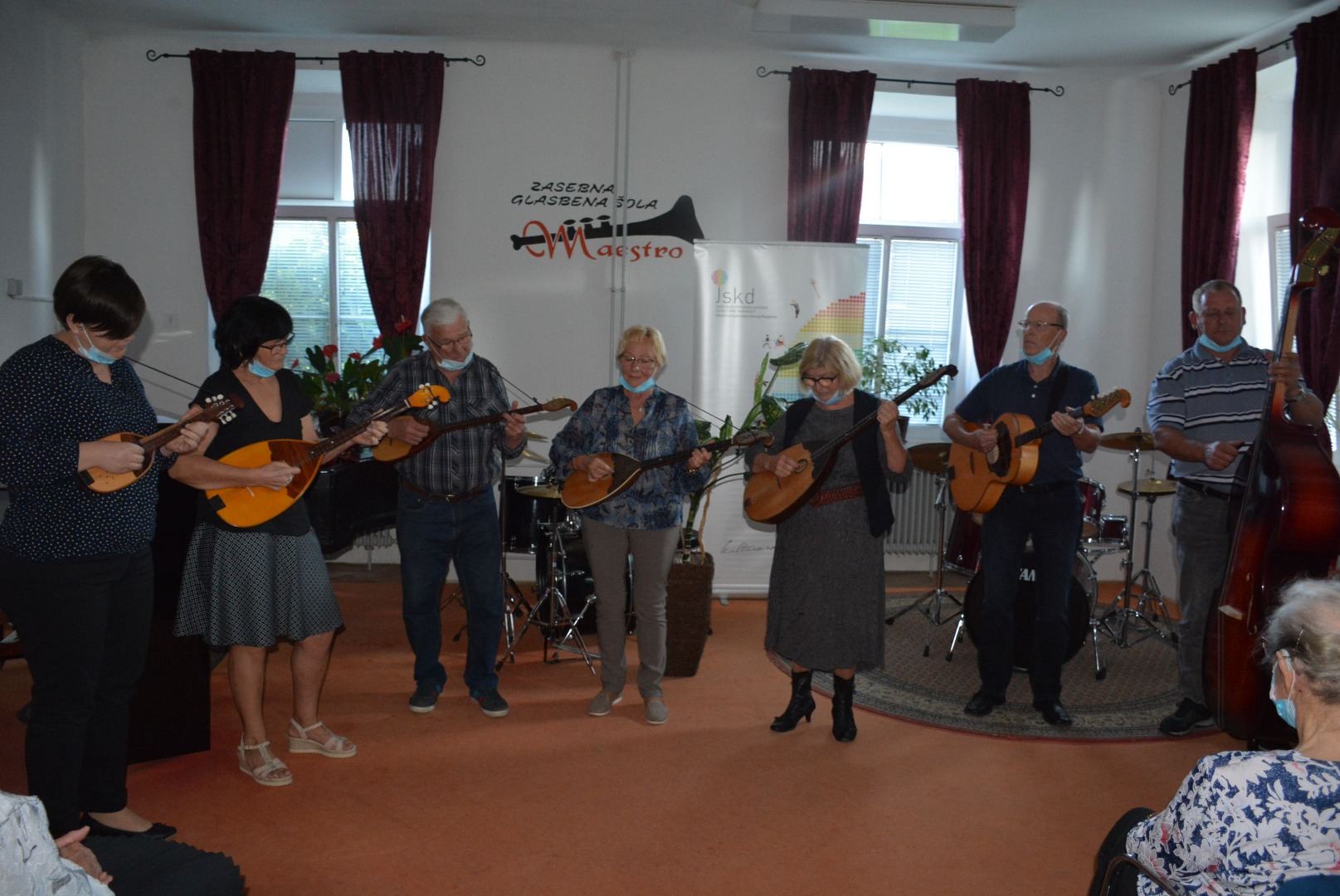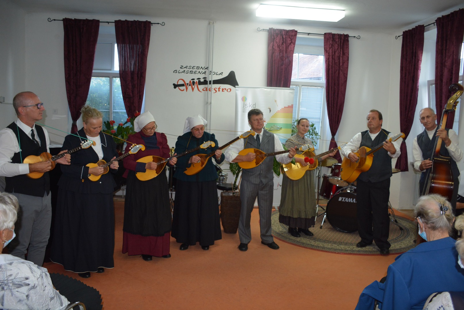 Revija pevcev ljudskih pesmi in godcev ljudskih viž brez gledalcev.