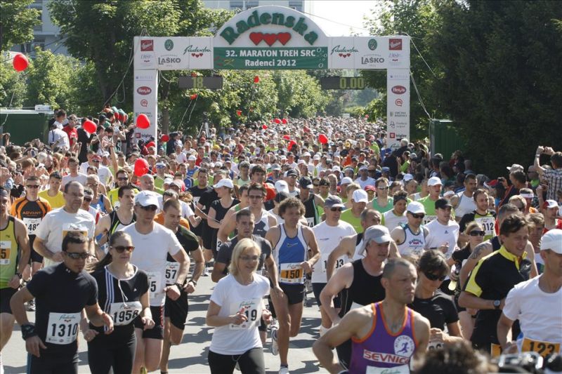 Radenci – V soboto, 19. maja 2012 je v Radencih, kjer že dobra tri desetletja pripravljajo mednarodni maraton treh src (MMTS), dosežen nov mejnik, in organizatorji 32. MMTS si upravičeno manejo roke. Več kot 8.000 aktivnih udeležencev različnih rekreativnih in tekmovalnih dogodkov, kar je nov rekord, dokazuje, da ima ta najstarejša športno-rekreativna prireditev v tem delu Evrope posebno mesto. Svoje je dodalo tudi lepo in sončno vreme, ki je bilo po godu skorajda vsem razen tekačem, ki pa so si po veliki vročini morali ohladitev iskati na številnih okrepčevalnicah ob progi. Splošna je tudi ocena, da so organizatorji tudi letos bili izjemno uspešni, saj smo na njihov račun slišali same pohvale. Tako od tistih, ki so že zjutraj štartali na 22. pohodu po vinorodnih Kapelskih goricah, kjer so se izkazali „Atilovi potomci“ pri kapelski preši, kot tisti, ki so tekli na štirih razdaljah med 5,5 in 42 km. Enako od tistih, ki so komajda shodili, a so le tekli na otroških tekih, humanitarcev, in tudi tistih, ki so se samo prišli naužiti zdravja, veselje in uživati v deželi srčkov.