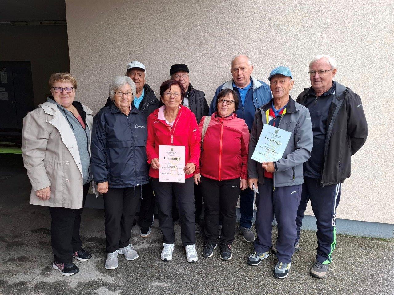 Društvo upokojencev Gornja Radgona je v okviru praznovanja 29. občinskega praznika občine Gornja Radgona tudi letos organiziralo in izpeljalo tradicionalno tekmovanje v balinanju. Tokrat so se zanimivega tekmovanja, ki je potekalo na lepem balinišču pri Domu starejših občanov Gornja Radgona, na Tratah, udeležilo po štiri povabljene moške in ženske ekipe, sestavljene iz pomurskih upokojencev. Kljub deževnemu vremenu so organizatorji uspešno izpeljali tekmovanje na balinišču pod streho. Ko gre za samo tekmovanje so letos največ uspeha imele članice in člani Društva upokojencev Bakovci, ki so mimogrede na lanskem turnirju v obeh konkurencah bili drugi, saj sta takrat slavili obe ekipi DU Gornja Radgona. Tokrat stas drugi mesti pripadli Lendavčanom in Radgončankam.