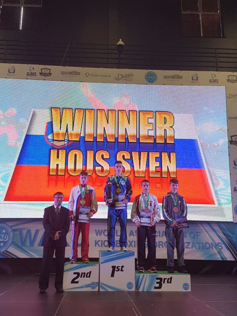 Mladi, 15-letni Sven Hojs iz Lenarta, član Kluba BV Proficio Group Hwarang iz Maribora, je v irski prestolnici Dublinu, osvojil naslov svetovnega prvaka v kickboxu za kadete do 52 kilogramov, in tako dopolnil bero odličij z velikih tekmovanj, saj je že doslej v Sloveniji osvojil vse kar se je dalo, bil pa je tudi evropski prvak, večkrat je zmagal na svetovnem in evropskem pokalu, na odprtem prvenstvu Nizozemske..., sedaj pa je kot član slovenske reprezentance stopil na svetovni vrh. Na poti do zlatega odličja v kickboxu do 52 kg je varovanec znanega trenerja Tomaža Barada, v osmini finala premagal Poljaka, v četrtfinalu Britanca, v polfinalu Hrvata in v finalu še Rusa Artema Boltačeva, vse po 3:0, razen Hrvata, ki ga je v polfinalu premagal 2:1. Po finalnem dvoboju se je tako zasluženo slavje Svena Hojsa lahko začelo, nekaj nepozabno pa je bilo poslušanje Zdravljice v lastno čast.