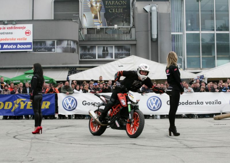 Rohnenje motorja, ki ga vozi KTM tovarniški voznik Rok Bagoroš iz Radencev, sicer edini slovenski profesionalni stunt voznik je minuli konec tedna napolnilo atrij Celjskega sejmišča, s čem je po mnogi nastopih v tujini, končno navdušil tudi Slovence. Vragolije v najbolj neverjetnih pozah so navduševale obiskovalce in jemale dih. Roj je sicer, v zadnjih dveh letih je le enkrat nastopil v domovini, edini slovenski profesionalni stunt voznik se namreč nenehno seli po šovih na najrazličnejših celinah sveta, kjer je nemara bolj poznan kot doma.