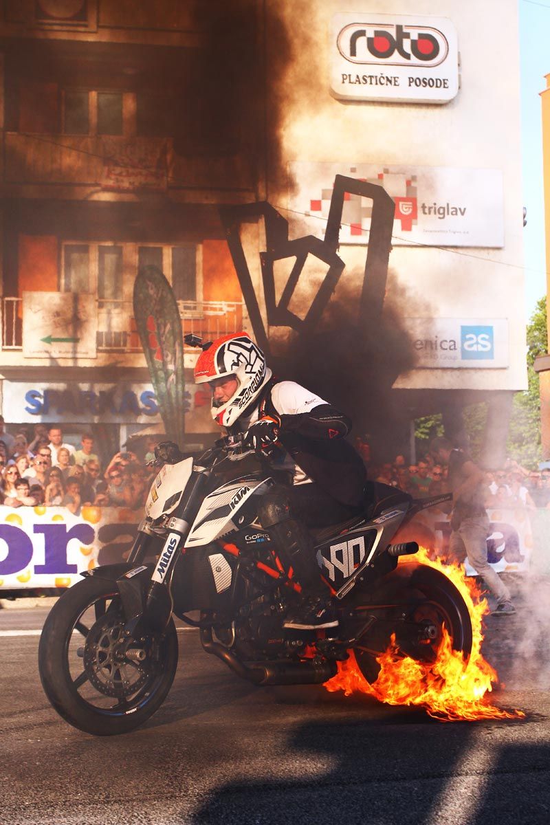 Program na centru Murske Sobote, ki ga je letos povezoval hudomušni TV voditelj Vid Valič, se je pričel, ko se je Rok v družbi več kot stotih motoristov iz vse Slovenije v svojem lastnem slogu – po zadnjem kolesu – pripeljel na prizorišče. Skupaj so štartali v Radencih, na tak način simbolično povezali Rokove domače kraje ter tako označili začetek adrenalinskega popoldneva. Prisotnim je adrenalin pognal po žilah mladi stuntman Jože Počič, ki se s skuterjem šele podaja v svet stunt motorizma, gume svojega Subaruja Impreze pa je na murskosoboškem asfaltu dobesedno trgel v drift showu polnem dima in atraktivnih elementov Marko Jager.