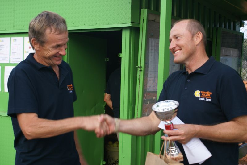 Na teniških terenih ŠRC Trate v Gornji Radgoni, kjer je vseskozi živahno in razgibano, je vse od letošnje pomladi potekalo klubsko tekmovanje TK Radgona, oziroma liga „Radgona 2011“, ki je pritegnilo rekordnih 55 igralk in igralcev iz Gornje Radgone in okolice ter tudi iz širšega območja Pomurja in Slovenskih goric. Moški (48) so najprej igrali v štirih skupinah po 12, in sicer po enokrožnem sistemu vsak z vsakim. Potem se je prvih osem uvrščenih znašlo na zaključnem turnirju, kjer je nastopilo 32 posameznikov in posameznic, ki so v nadaljevanju igrali po turnirskem sistemu na izpadanje. Štirje prvi nosilci glavnega turnirja so bili zmagovalci predtekmovalnih skupin, ki so v večini tudi potrdili vloge favoritov. V samem tekmovanju najboljših posebnih presenečanj namreč ni bilo, le poraz 3. nosilca Bena Žnuderl proti Robertu Volfu, ki letos ni bil med prvimi štirimi nosilci. Na koncu pa je znova prepričljivo slavil prvi favorit Sandi Kumer, ki je ubranil naslov od lani, v finalu pa je enako kot lani gladko opravil z Markom Volfom. Na 3. mesto se je uvrstil Milan Žnuderl, Robi Volf pa se je moral zadovoljiti s končnim četrtim mestom.