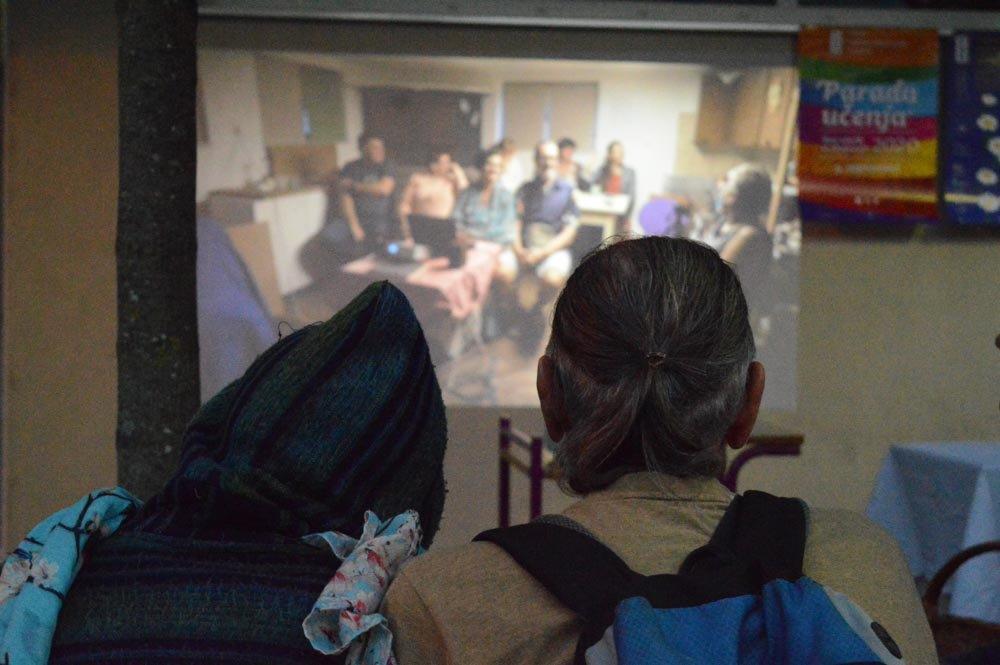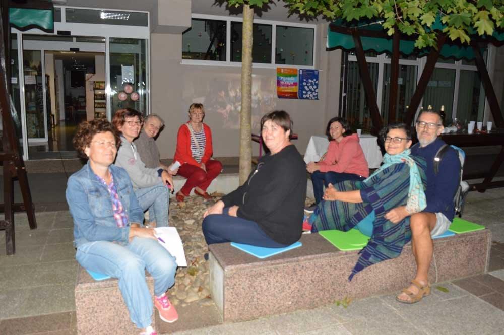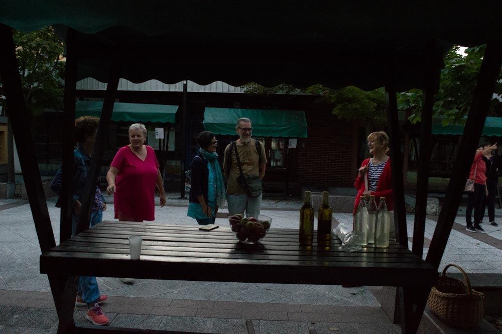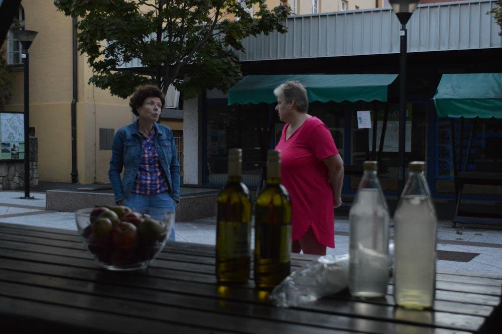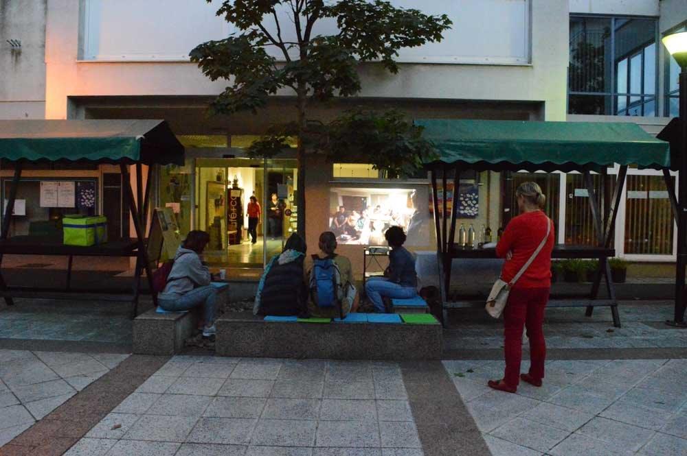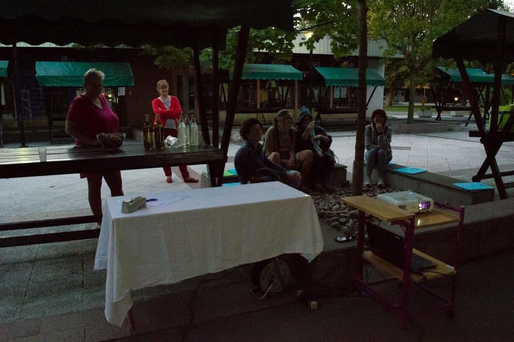Bezjakova pravi, da so v enem izmed filmov spoznali mačko, ki je imela učiteljico piana in je osem let sodelovala pri koncertnih nastopih. Tudi Jasmine de Veras, udeleženka krožka je pianistka. Zaupala nam je, da jo vse življenje spremljajo mačke, a da ji ni uspelo nobeno naučiti igranja. Projekcija pred knjižnico se je vrtela v Loop-u. Mimoidoči so bili pogoščeni s sadjem, sokom in vinom. Bila je pa tudi priložnost za krožkarje, da si zunaj ogledajo zadnji film Jakoba Vogrinca z naslovom Čajanka. Spet je bilo prisotno prevajanje in »jezikovanje«. Udeleženci so bili prvi gledalci in so podali svoje mnenje, ki bo ustvarjalcu pomagalo pogledati na film še kritično in z drugih zornih kotov. Dober je, ker prav vsak udeleženec krožka prispeva svoj mozaični kamenček. Sodelujejo tudi ljudje s posebnimi potrebami iz VDC Murske Sobote.