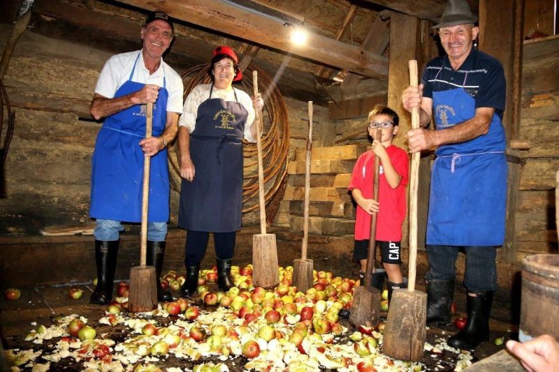 Spet so pokazali, kako se je v Slovenskih Goricah nekoč pripravljal jabolčnik. Iz bio jabolk je nastala enkratna pijača, ki so jo stisnili na 300 let stari leseni stiskalnici.