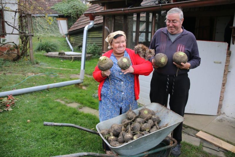 Jožef in Marica Paurič iz okolice Negove z obilnim pridelkom zdravilne črne redkve.
