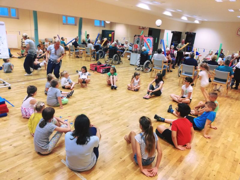 In tako je bilo tudi tokrat, ko so zaposleni s seboj v službo pripeljali tudi svoje otroke, ki so se tako udeležili „projektnega tedna otrok zaposlenih v domu starejših“. V Dosorju so otroci zaposlenih preživljali teden ni, ko so ustvarjali na delavnicah, se igrali, družili med seboj in s stanovalci, seveda tudi s svojimi starši. Letos je tako en teden počitnic v domu preživelo kar 20 otrok, ki so vsakodnevno v dom prihajali že pred sedmo uri zjutraj in so nato sodelovali v aktivnostih vse do popoldneva. Varstvo je potekalo vsak dan do 14,30 ure, za 20 otrok pa je izmenično skrbelo 9 zaposlenih. Vmes so otroci dodobra spoznali delo svojih staršev in drugih zaposlenih v Dosorju, vsak dan pa so imeli različne aktivnosti in zabave, saj so med drugim ustvarjali iz Das mase, po kosilu in počitku so pekli palačinke, česar so se izjemno razveselili. Naslednji dan so imeli še kulinarične delavnice, na katerih so izdelovali sladkorne penice in sadna nabodala, razveselili so se tudi vožnje z vlakcem in še mnogih drugi zanimivih aktivnosti. Ob tem se je 20 otrok – od pet do 14-letnikov – srečalo s čarovnikom, obiskali bližnje Zdravilišče Radenci, kjer so ustvarjali iz gline in preizkusili njihov fitnes. V tednu dni so lahko izrazili svojo kreativnost in ustvarjalnost skozi več dejavnosti (poslikava stene, izdelava brošk in nakita, izdelava akvarija iz kartonskih škatel, risanje s kredami, ...). Izpeljanih je bilo tudi nekaj skupnih aktivnosti s stanovalci, kot so jutranja telovadba, igrajmo se skupaj, čarovniški triki in še. Seveda ni manjkalo družabnih iger in športnih aktivnosti, smeha pa tudi tradicionalne priprave sadne kupe. Manjkalo ni niti vodnih bombic, ves čas so se srečevali in družili s stanovalci doma, se učili programa za zaključek in na koncu, v petek, nastopili na sklepni prireditvi pred stanovalci in zaposlenimi.