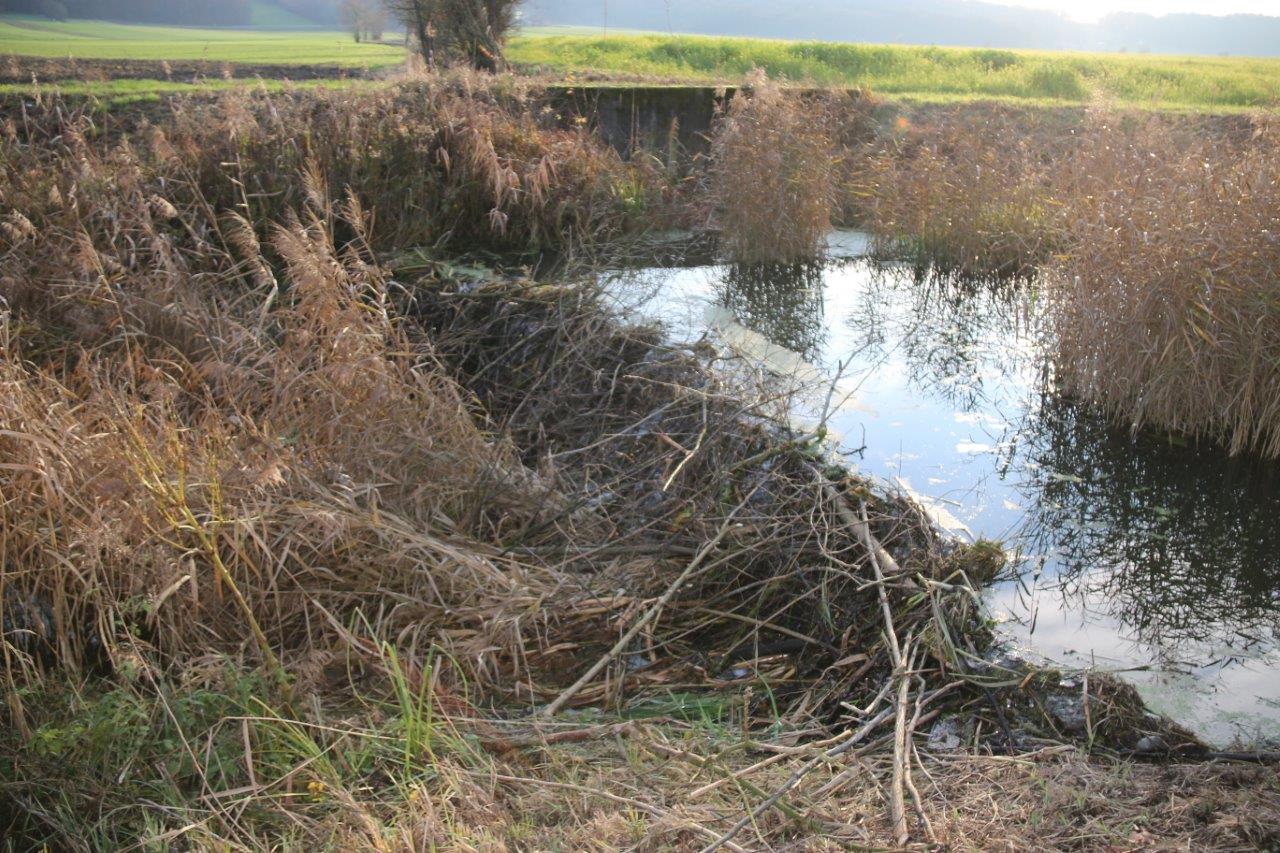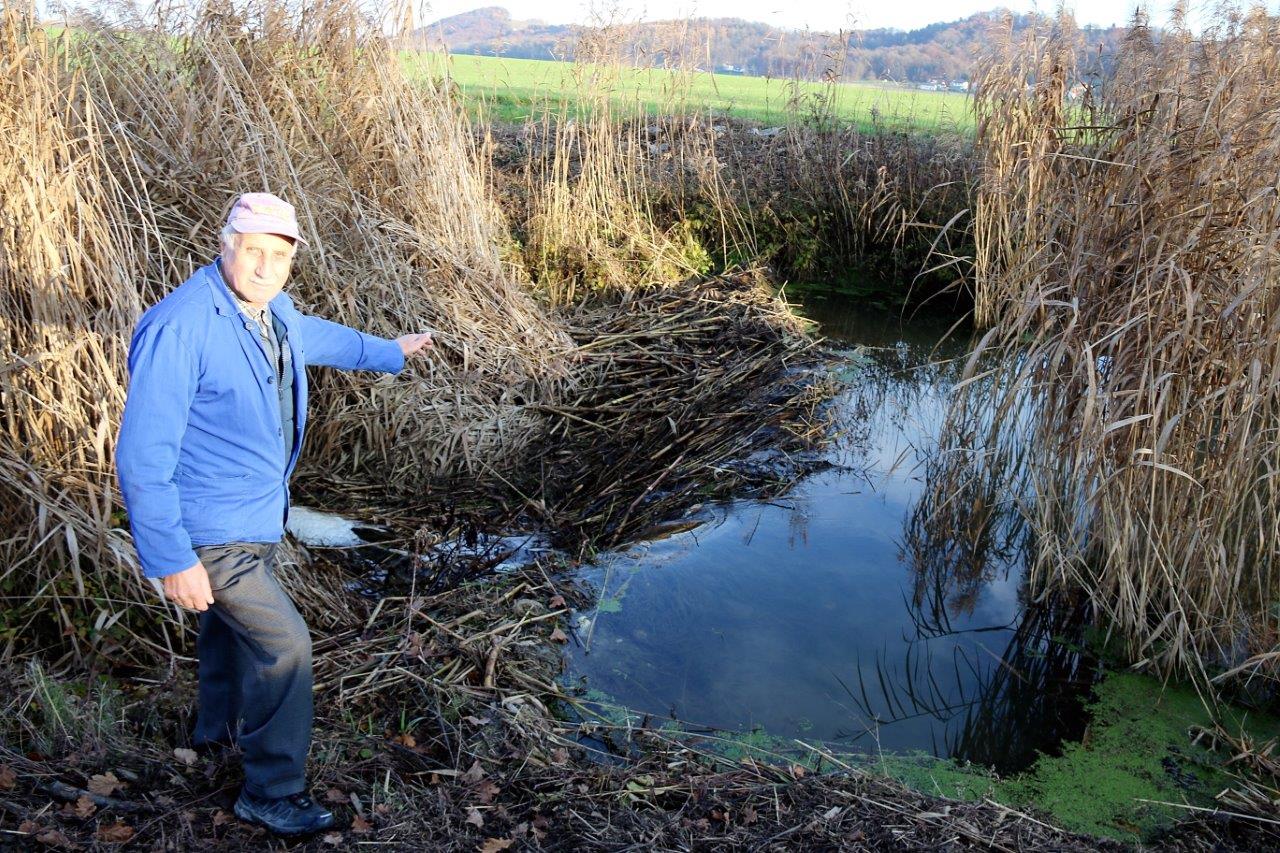 Prav o tem nam je spregovoril omenjeni Franc Kuri: „Bobri na Plitvici, ob tem potoku ali rečici tudi živim, so prisotni kakšna štiri leta. Ker se pogosto sprehajam po nasipu, sem v večernem mraku videl bobra kako nabira veje za jez. To je bilo takrat, ko je še v strugi oziroma na brežini raslo vrbovje, kajti sedaj je struga čista, se pravi, je rastlinje zmučeno. Kot kaže pa je bober iznajdljiv. Za gradnjo novega bobrišča je uporabil kar koruzna stebla. Kot je videti, jih je skrbno »zazidal«, kajti jez, ki je visok nekaj več kot meter, drži vodo. Po mojem ima dom na nasipu, saj se ne najem pojavila luknja, ki nakazuje pot do njegovega podvodnega bivanja.“ In jez iz koruzne slame, kot je že omenil sogovornik, 72 - letni Franc Kuri, je dokaz, da je bober svoje delo opravil mojstrsko. Toda nad to gradnjo ni bil navdušen lastnik njive posejane s koruzo, saj je bober za jez porabil, po videnem, več kot 1000 stebel.
