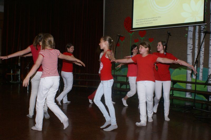 S poučnimi recitali in glasbenim repertoarjem mladih perspektivnih glasbenikov, med njimi Tolk-Asi GŠ GR, ki so lani izdali svoj prvi koncertni DVD in High Five, so učenci pozivali k darovanju. Na klic dobrodelnosti so se odzvali tudi moški vokalni kvintet Aeternum, ki je zapel nekaj lepih pesmic, ter ansambel Klapovuhi, ki so se predstavili s skladbicama „Če si za to“ in „50 let“, za kateri je besedilo spisala Mili Korpar, glasbo pa Tomi Valenko. Že pred tem in po pozdravu mladih voditeljev, predsednika šolske otroške vlade Nina Irgoliča, ter predstavnice šolske otroške vlade za kulturo, Laure Müler, smo slišali številne zanimive recitale (Sanje; Mame, Zemljani in malomeščani; Nekega dne; Sokrat; Družina; Domovina; Smeh; Sreča; Otroci...) in predvsem pesmice (Sonce-šolska himna, Zgodba o prijateljstvu, All that I can say, Let Me Entertaln, Axel F, Tiso Tico, Teqila, Two Hearts...), spremljali pa smo tudi poljski ljudski ples „Kolomajki“ v izvedbi Plesne skupine 6. in 7. razreda OŠ Gornja Radgona, pod vodstvom Nataše Irgolič.